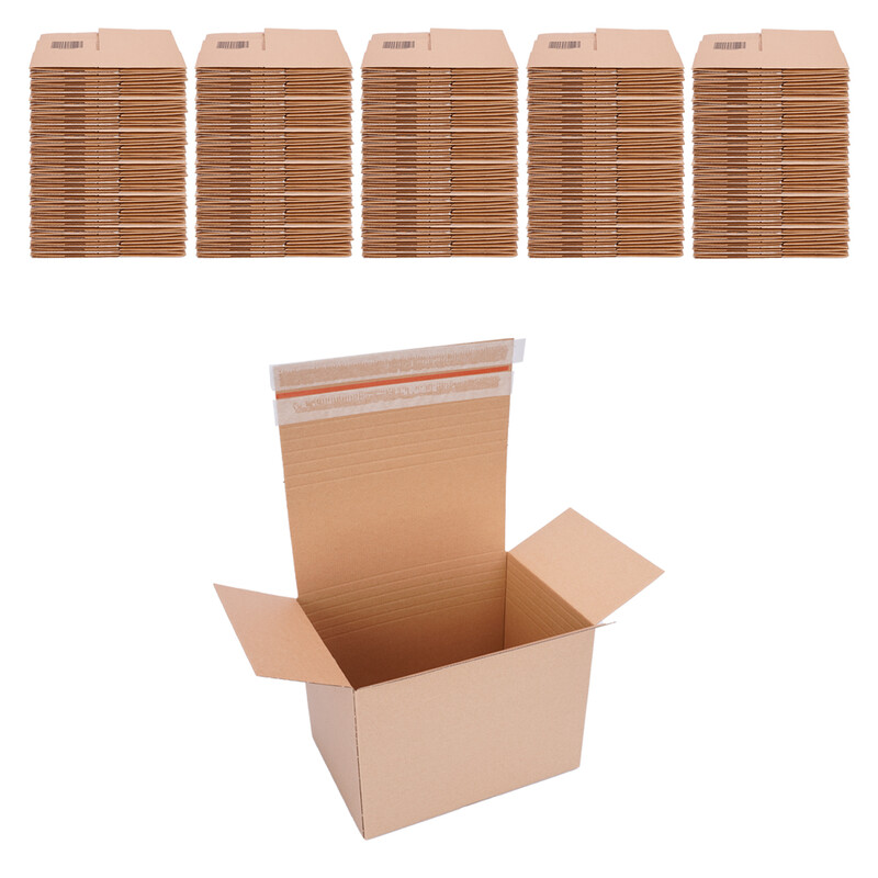 Dank des fertig verklebten Bodens sind diese Kartons sofort nach dem Aufklappen einsatzbereit. Da nichts fixiert werden muss, nennt man diese Kartons auch 'Automatikkartons' oder 'Kartons mit automatischem Boden'. Der selbstklebende Deckel erlaubt auch das Verschließen der Verpackung ohne Klebeband oder Umreifung.