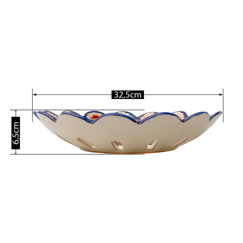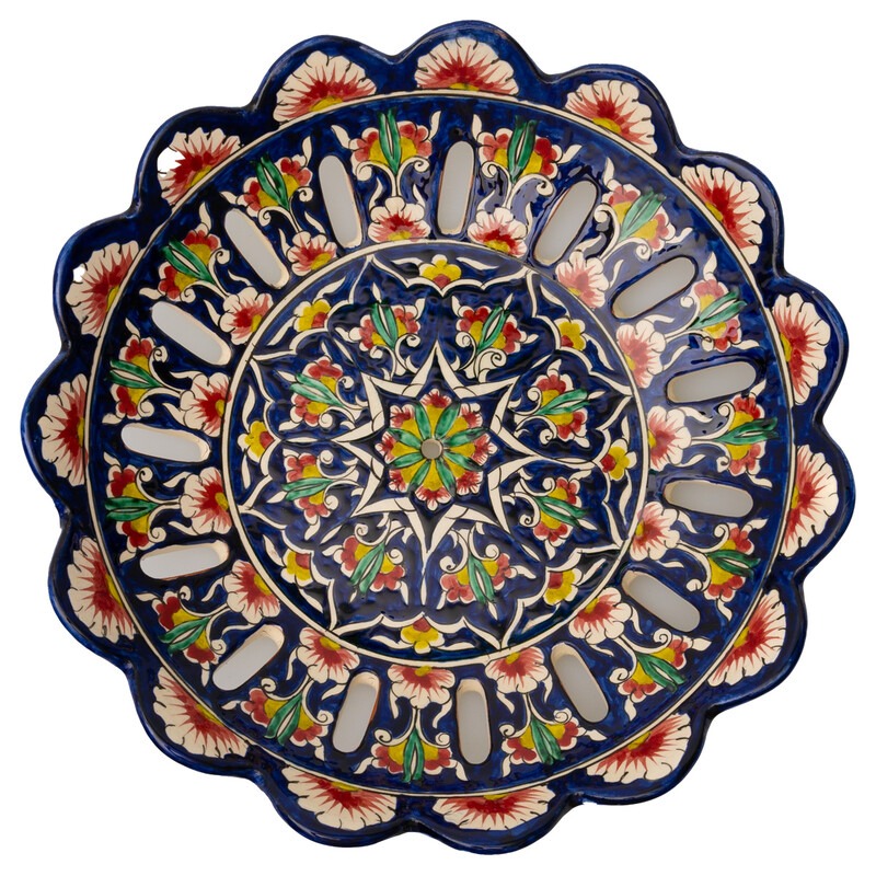 Die usbekische Obstschale ist ein wahrer Schatz für Liebhaber traditioneller Handwerkskunst. Jede Schale wird mit großer Sorgfalt von Hand bemalt und spiegelt die jahrhundertealte Keramiktradition Usbekistans perfekt wider. Das einzigartige Design dieser Schalen ist eine Hommage an die unvergleichliche Handwerkskunst der Region.