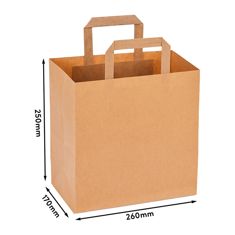 Papiertragetasche mit Flachhenkel 25 x 26 x 17 cm - Papiertüte Braun
