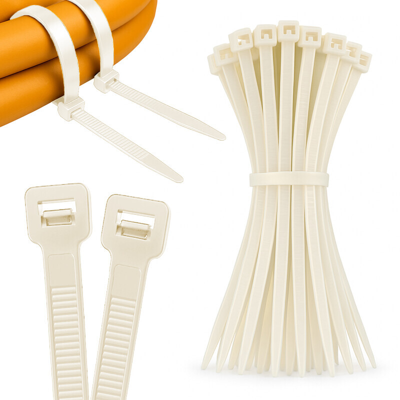 Die Kabelbinder sind in Natur oder Schwarz erhältlich. Größe und Menge können gewählt werden, sodass für jede Anwendung die passende Variante zur Verfügung steht. Die schwarze Ausführung eignet sich besonders für Bereiche mit höherem Anspruch an Optik oder reduzierte Sichtbarkeit.
