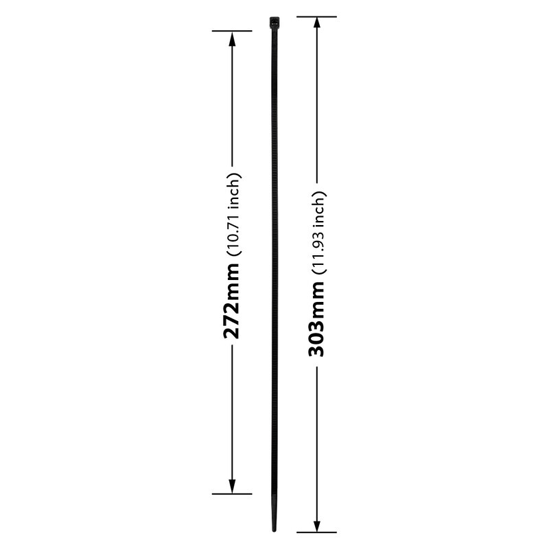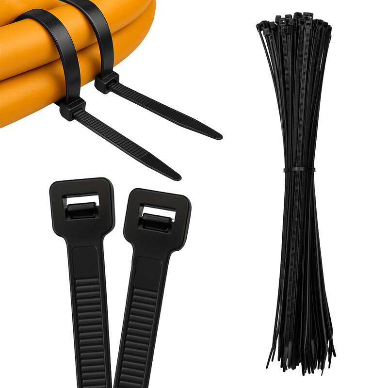 • 200 schwarze Kabelbinder in der Größe 300 x 3,6 mm.