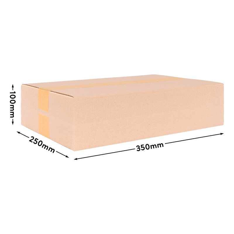 Unsere rechteckigen Faltkartons sind Ihr zuverlässiger Begleiter für den Versand von kleinen Waren und entsprechen exakt den Maßen des DHL Päckchen S. Mit einem Außenmaß von 350 x 250 x 100 mm und einem Innenmaß von 345 x 245 x 90 mm bieten sie die perfekte Größe für den sicheren Versand Ihrer Produkte. Jeder Karton wiegt lediglich 160 g und ist somit leicht und einfach zu handhaben. Die Kartons lassen sich kinderleicht falten und aufbauen, wobei zum Verschließen und Versenden Klebeband benötigt wird. Sie entsprechen der Bauartqualität FEFCO 0201 und sind an allen Seiten mit der schützenden B-Welle ausgestattet, was eine robuste Verpackung gewährleistet. Die Boxen sind bündig geschlossen und können bis zu 20 kg tragen, was sie ideal für den sicheren Versandweg macht. Insgesamt umfasst der Lieferumfang Faltkartons in der Farbe Braun, die allesamt die genauen Maße des DHL Päckchen S erfüllen. Diese Kartons bieten eine zuverlässige Lösung für einen professionellen und sicheren Versandprozess. Die rechteckige Form der Kartons ermöglicht nicht nur ein einfaches Stapeln für die Lagerung, sondern auch eine vielseitige Verwendung im Warenversand, insbesondere für kleine oder mittelgroße Produkte. Alternativ können sie zum Sortieren und Ordnen verwendet werden, da ihre Oberfläche ohne Schwierigkeiten beschrieben und beklebt werden kann. Insgesamt bieten unsere Faltkartons eine zuverlässige Lösung für den sicheren und kostengünstigen Versand Ihrer Waren. Mit ihren exakten Maßen, ihrer Robustheit und ihrer Vielseitigkeit sind sie die ideale Wahl für einen professionellen Versandprozess.